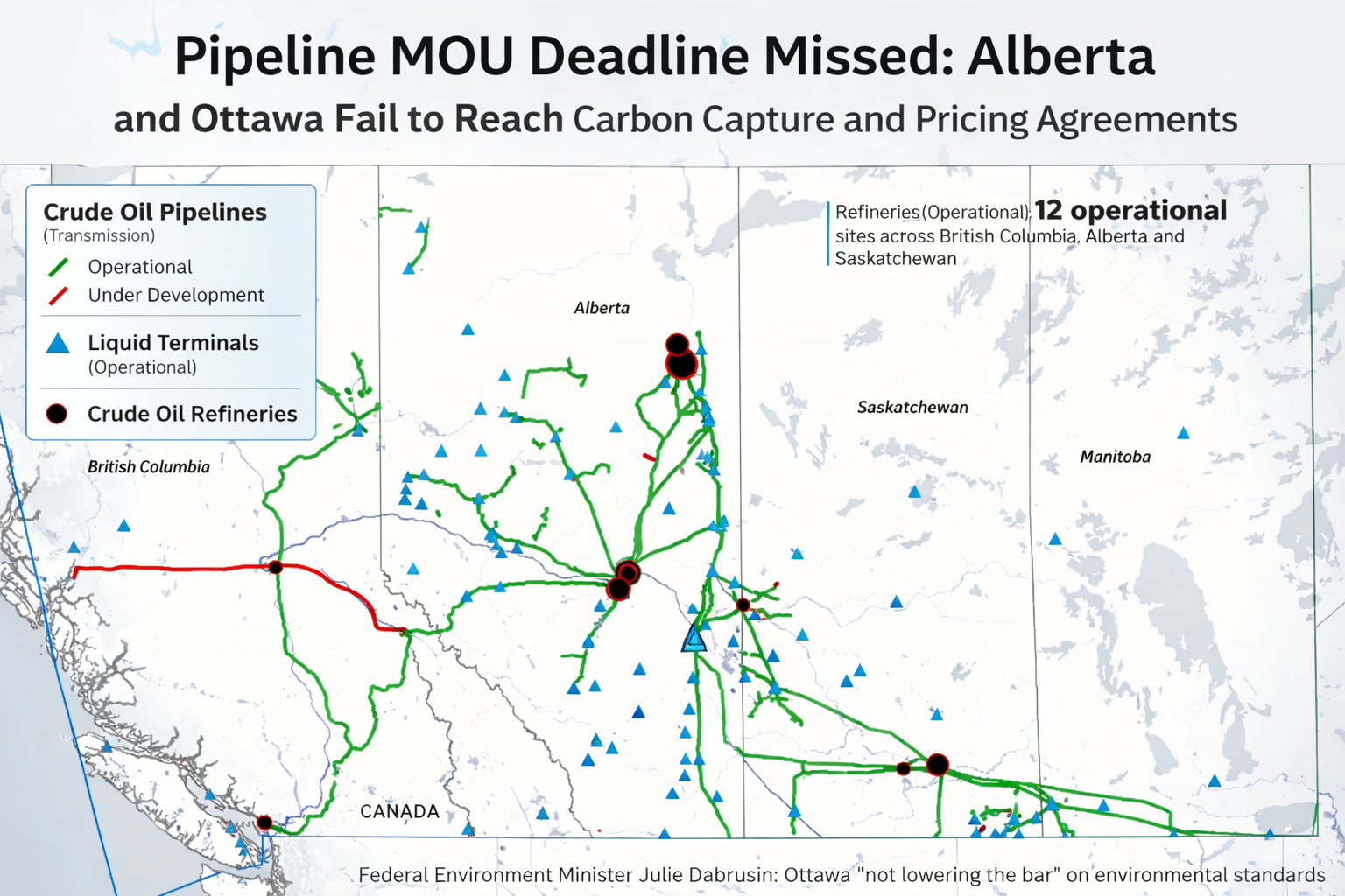 Negotiations between the federal government and Alberta were expected to produce agreements on carbon pricing, carbon capture, and regulatory alignment ahead of a critical memorandum of understanding (MOU) deadline. That deadline has now passed without a full deal.